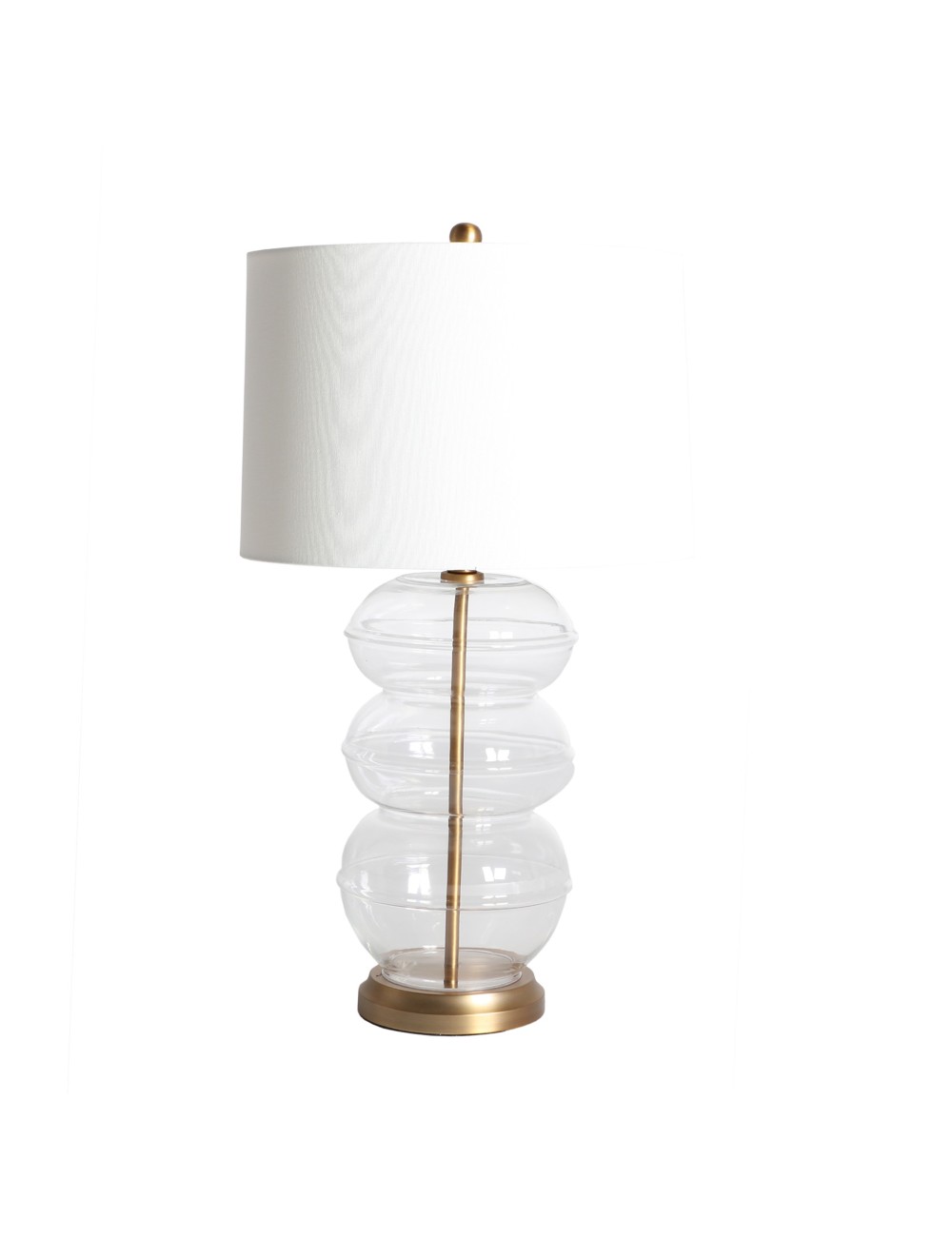 Lámpara de sobremesa de estilo clásico fabricado en hierro en color transparente combinado con cristal y lino. Producto desmontable.