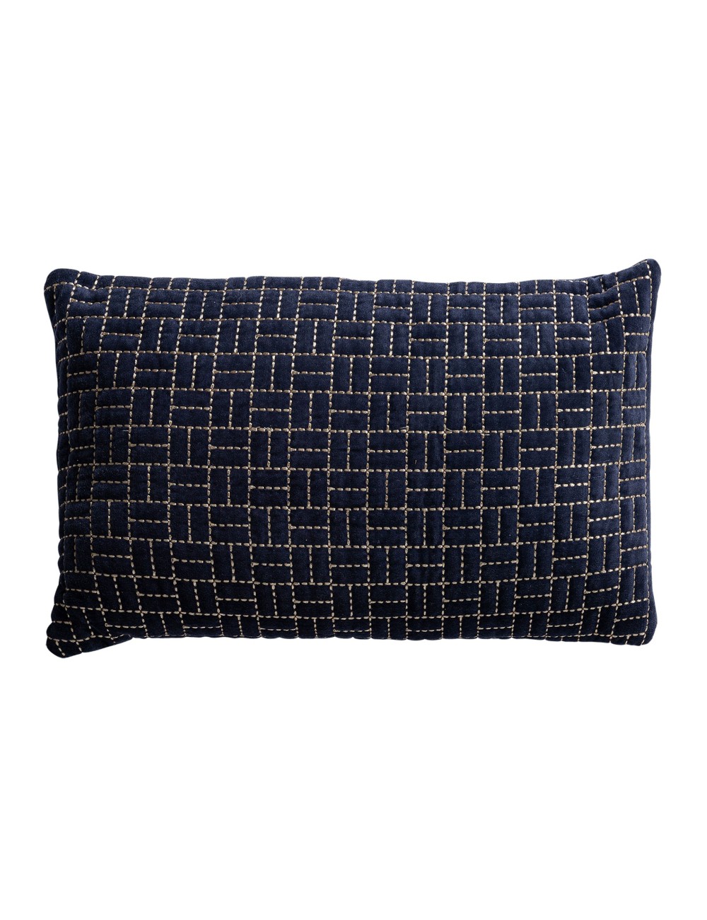 Cojín Lis de estilo clásico fabricado en terciopelo en color azul con acabado bordado combinado con algodón y poliéster. Producto desenfundable.