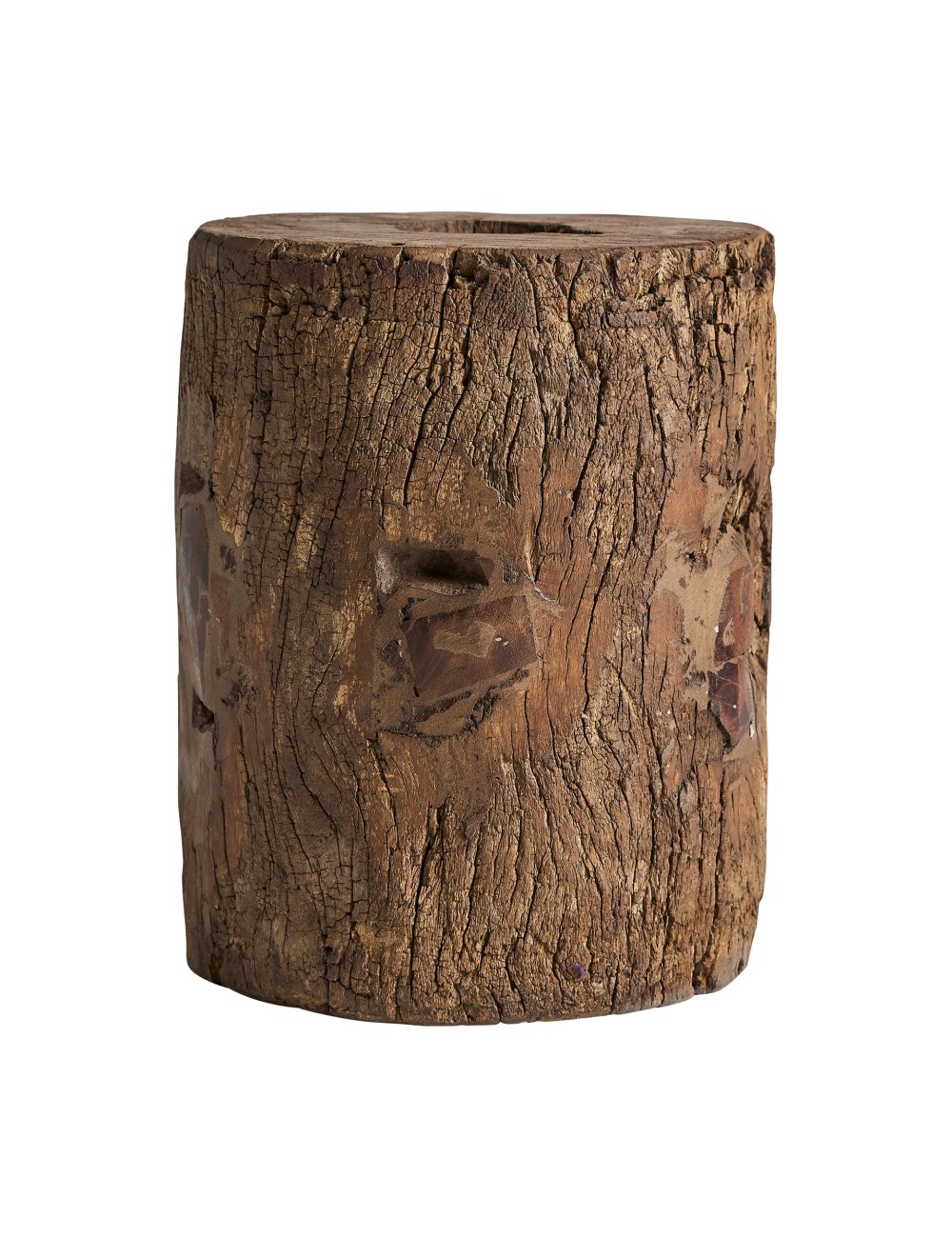 Reposapiés Kraj de estilo étnico fabricado en madera de mango en color marrón con acabado envejecido.
