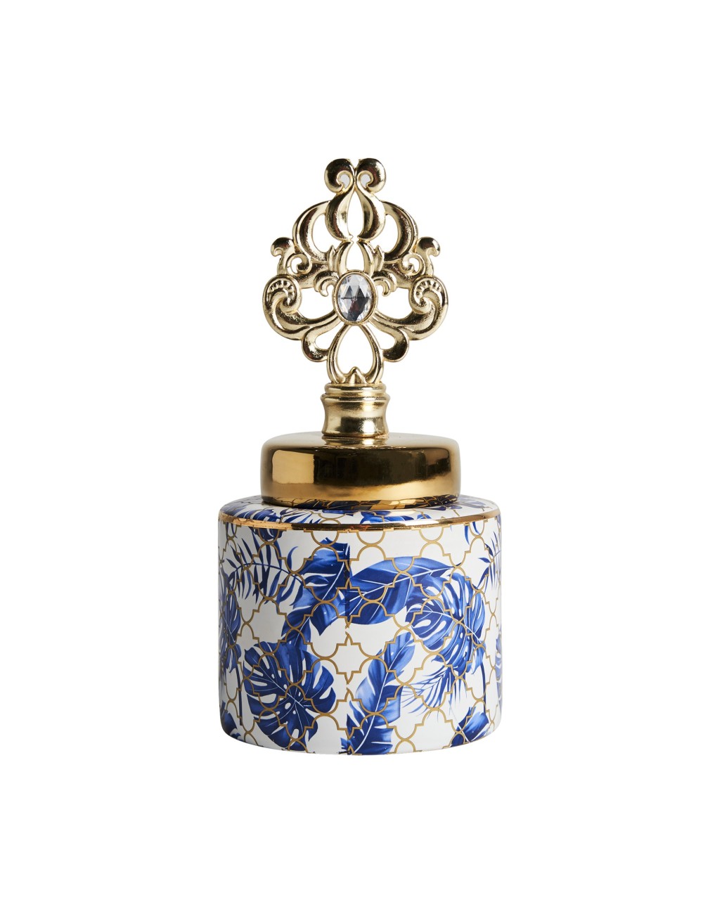 Tibor Bear de estilo art deco fabricado en cerámica en color tonos de azul. | Jarrón Plissé stone de estilo art deco fabricado en cerámica en color blanco. | Jarrón phelles en color crema envejecido de estilo étnico. Fabricado en terracota combinado con madera. Producto desmontable. | Jarrón nohae de estilo art deco fabricado en cerámica en color negro. |