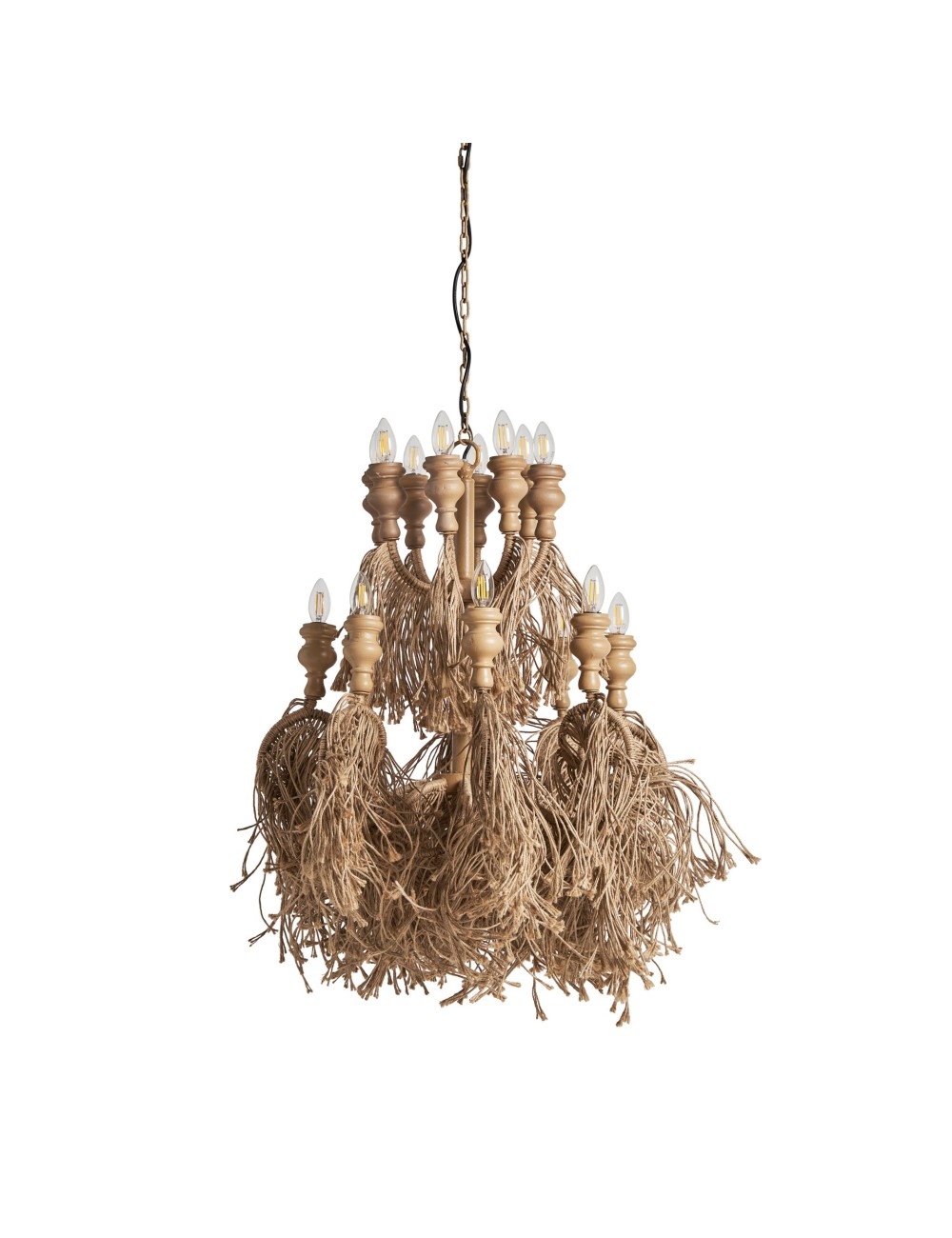 Lámpara de colgar de estilo contemporáneo fabricado en yute en color marrón.