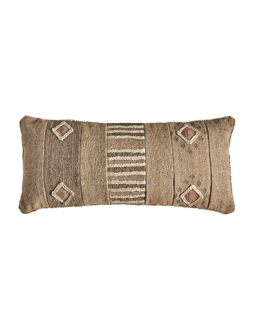 Cojín rectangular elgin de estilo vintage fabricado en yute en color marrón con acabado killim. Producto desenfundable. | Cojín Sulea de estilo shabby chic fabricado en algodón en color rosa palo combinado con lino. 55% lino 45% algodón. | Cojín cuadrada keith en color marrón killim de estilo vintage. Fabricado en yute combinado con poliéster. Producto desenfundable. | Cojín Mittet de estilo boho fabricado en lana en color tonos claros combinado con yute y algodón. Producto desenfundable. |