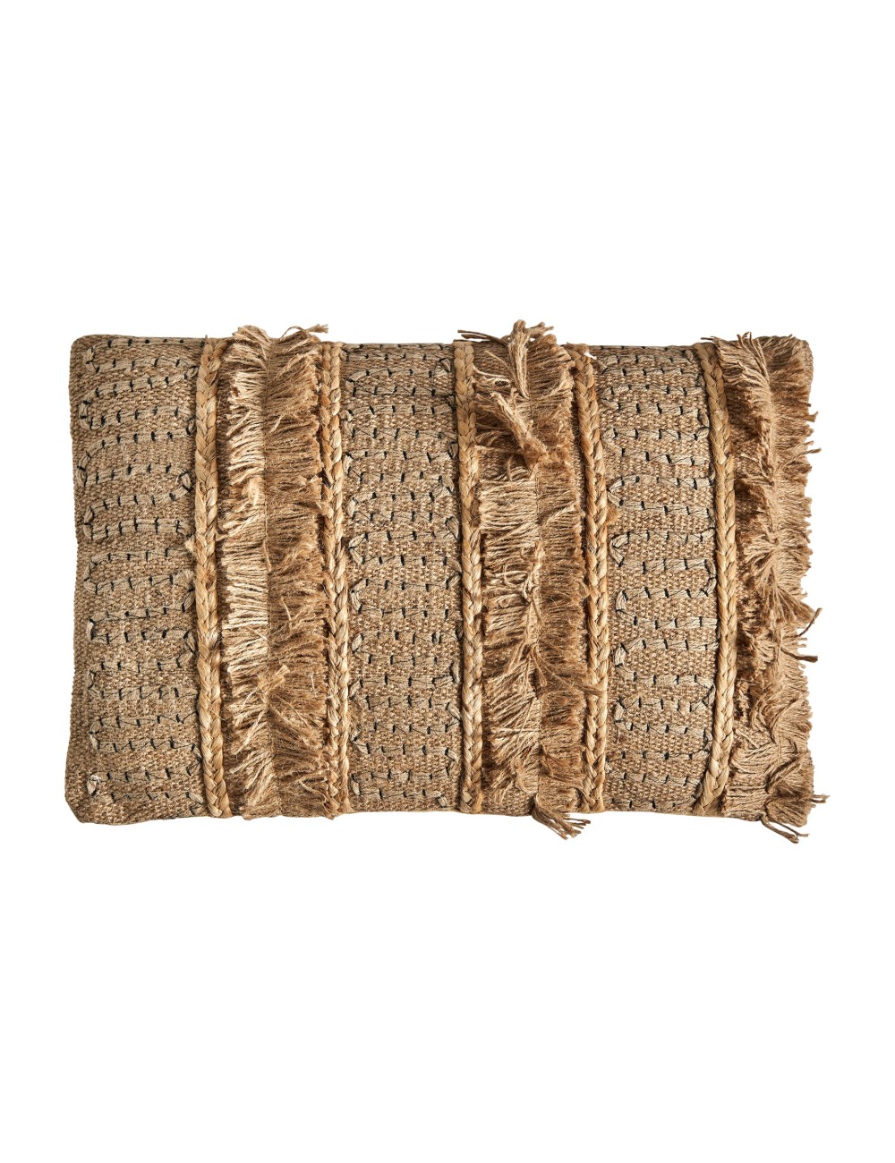 Cojín rectangular elgin de estilo vintage fabricado en yute en color beige con acabado killim. Producto desenfundable.