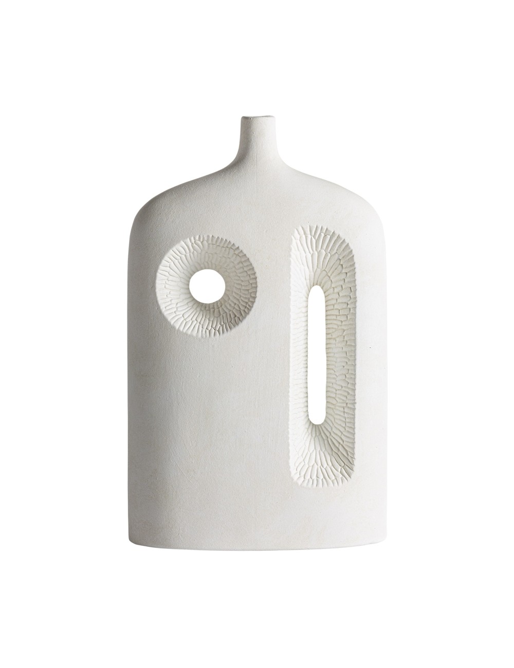 Jarrón leghe de estilo art deco fabricado en cerámica en color blanco. | Botella decorativa Tronco de estilo étnico fabricado en vidrio en color burdeos. | Jarrón Den de estilo vintage fabricado en vidrio en color naranja con acabado envejecido. | Jarrón Akane de estilo kitsh fabricado en vidrio en color beige con acabado brillo. |