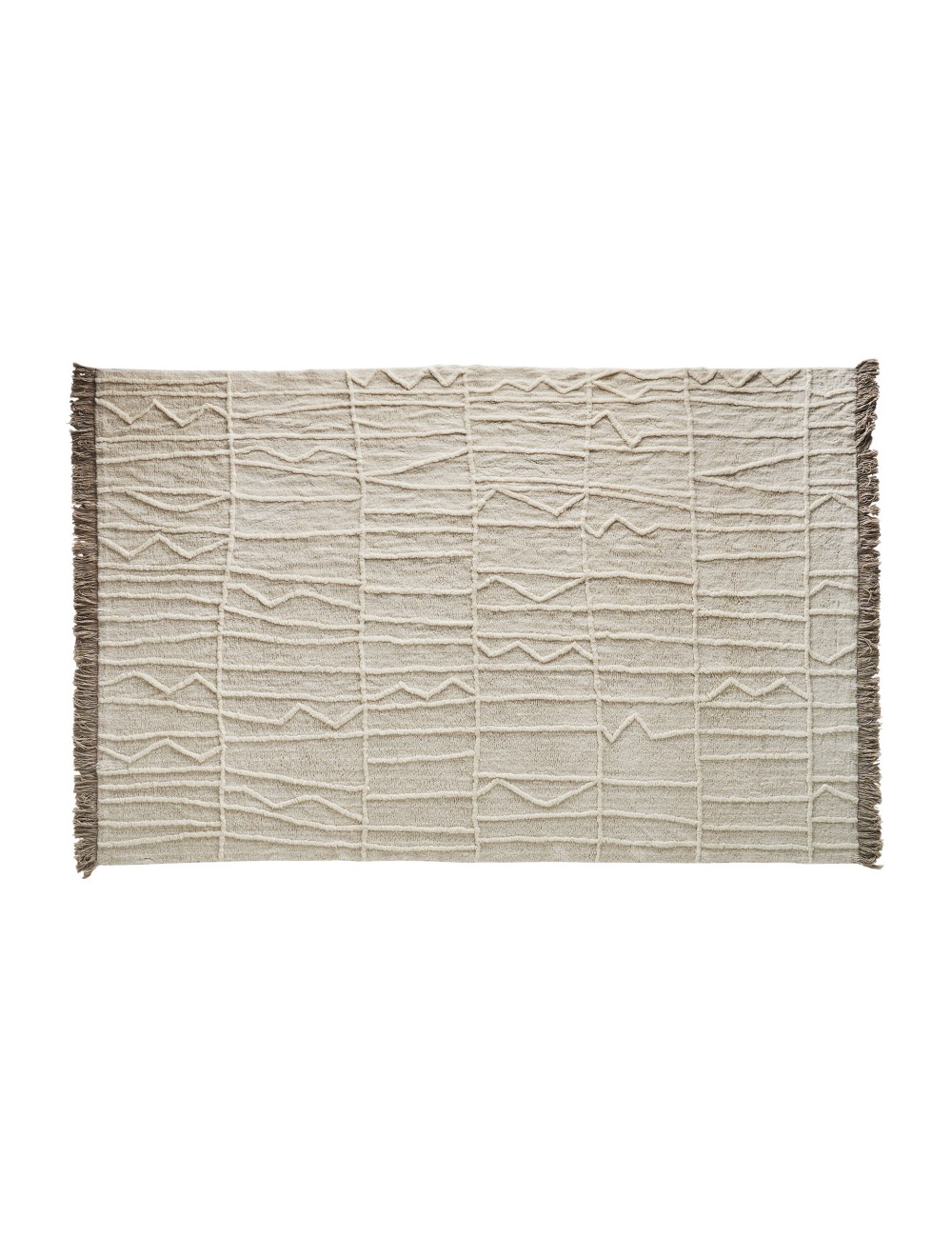 Alfombra Yerah de estilo provenzal fabricado en lana en color crema combinado con algodón y fibra natural.