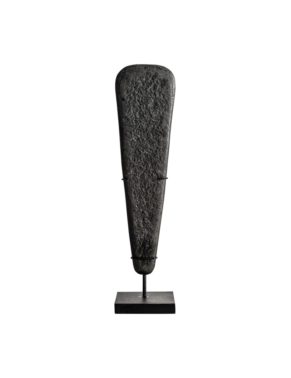 Escultura stone de estilo étnico fabricado en piedra en color negro combinado con hierro en color negro. Producto desmontable.