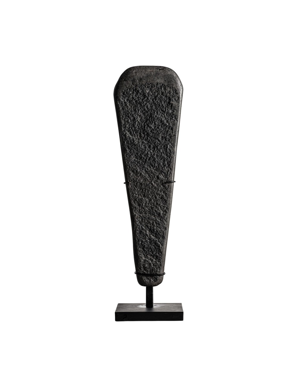 Escultura stone de estilo étnico fabricado en piedra en color negro combinado con hierro en color negro. Producto desmontable.