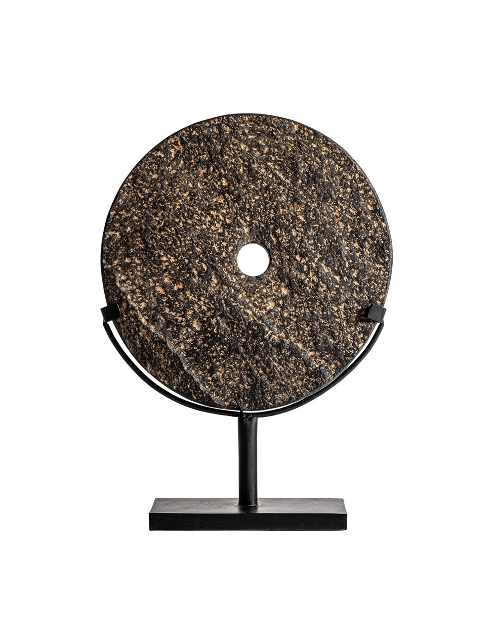 Figura decorativa seoane de estilo nórdico fabricado en piedra en color tonos oscuros combinado con hierro en color negro. Producto desmontable.