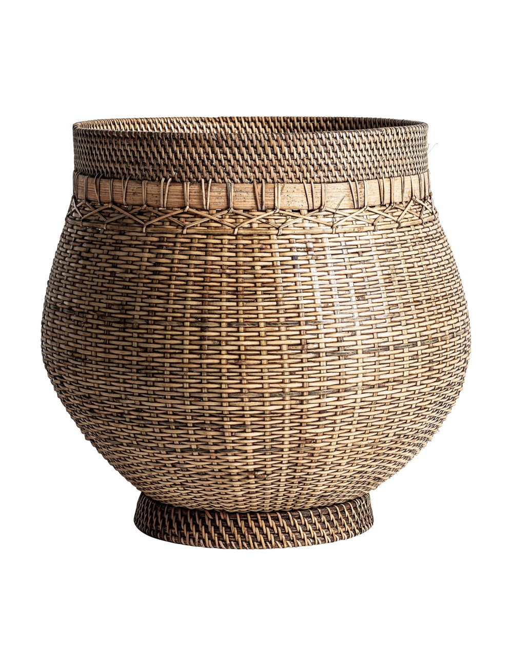 Cesto de estilo boho fabricado en ratán en color marrón. | Reloj Greer de estilo art deco fabricado en hierro en color oro combinado con cristal. |