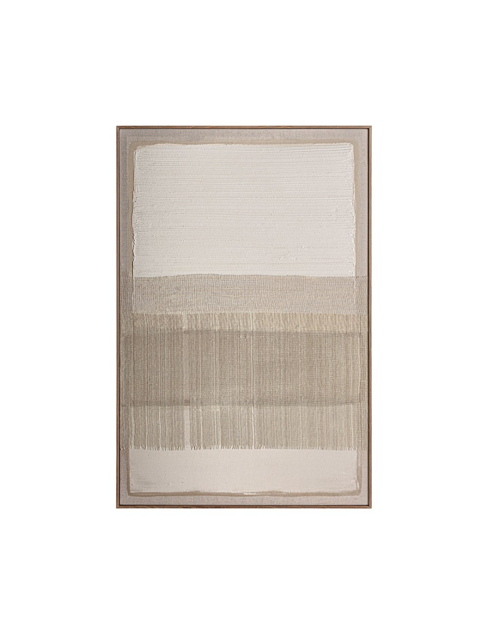 Cuadro Darcy de estilo contemporáneo fabricado en lienzo en color tonos claros con acabado artesanal combinado con madera de pino en color marrón.