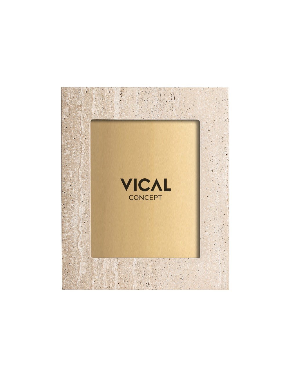 Marco de foto Tetbury de estilo art deco fabricado en mármol en color beige combinado con hierro en color negro.