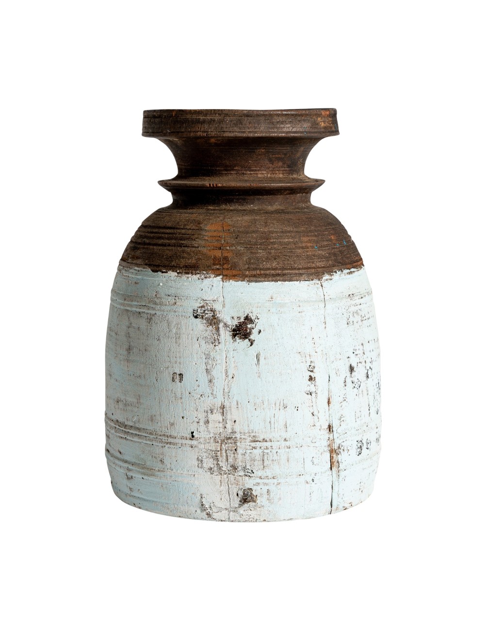 Jarrón kalid de estilo étnico fabricado en madera recuperada en color tonos en marrón. | Botella decorativa caballo de estilo étnico fabricado en vidrio en color burdeos combinado con madera de teka reciclada. | Tibor Uxue de estilo provenzal fabricado en cerámica en color blanco en color oro. | Jarrón Gieler de estilo art deco fabricado en cristal en color mostaza con acabado envejecido. |