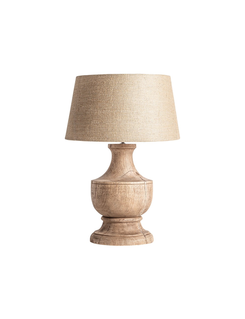 Lámpara de sobremesa. Fabricado en madera de mango combinado con yute.