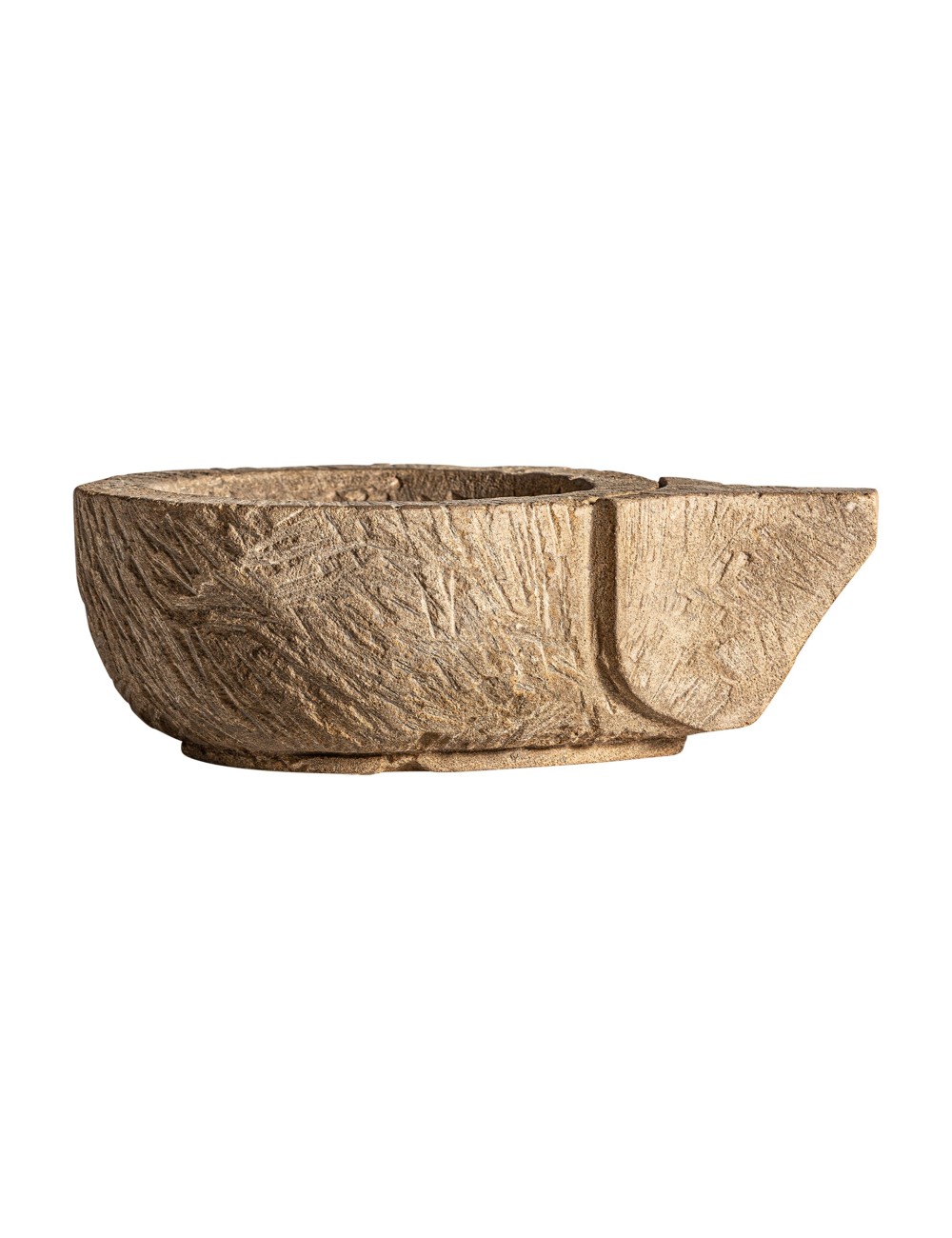 Centro de mesa de estilo clásico fabricado en piedra en color marrón claro con acabado envejecido. Cuenco Nakuru de estilo colonial fabricado en madera de acacia en color marrón. Centro de mesa j 2 de estilo contemporáneo fabricado en onix en color marfil. Centro de mesa Lumo de estilo contemporáneo fabricado en terracota en color blanco roto con acabado texturizado.