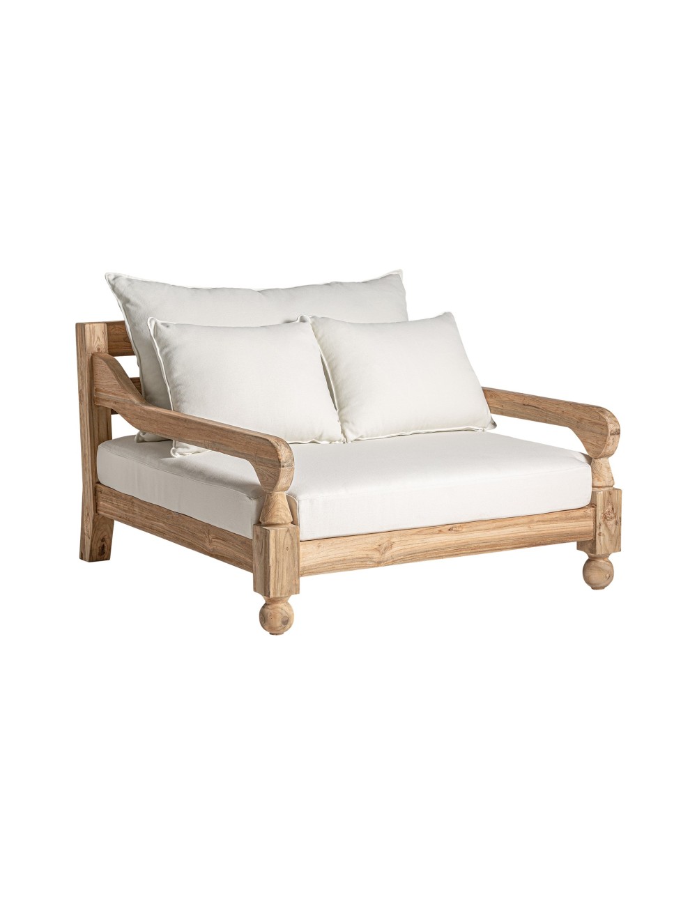 Sofá jodphur de estilo colonial fabricado en madera de teka reciclada en color marrón con acabado natural combinado con polipropileno reciclado en color blanco. Producto desmontable desenfundable. Compatible con: 34009 34178.