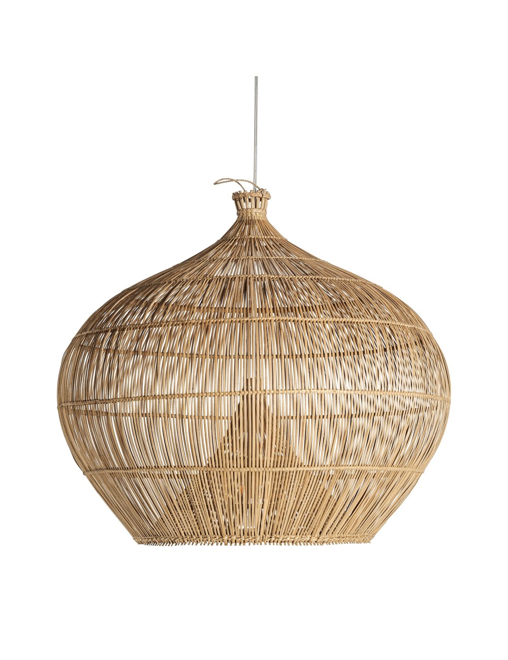 Lámpara de colgar Koba de estilo boho fabricado en bambú en color marrón claro. | Lámpara de colgar khed de estilo boho, fabricado en yute en color marrón, combinado con hierro. | Lámpara de colgar Coral de estilo boho fabricado en algodón en color naranja. | Lámpara de colgar nyland de estilo rústico fabricado en resina en color crema con acabado rugoso combinado con yute en color arena. |
