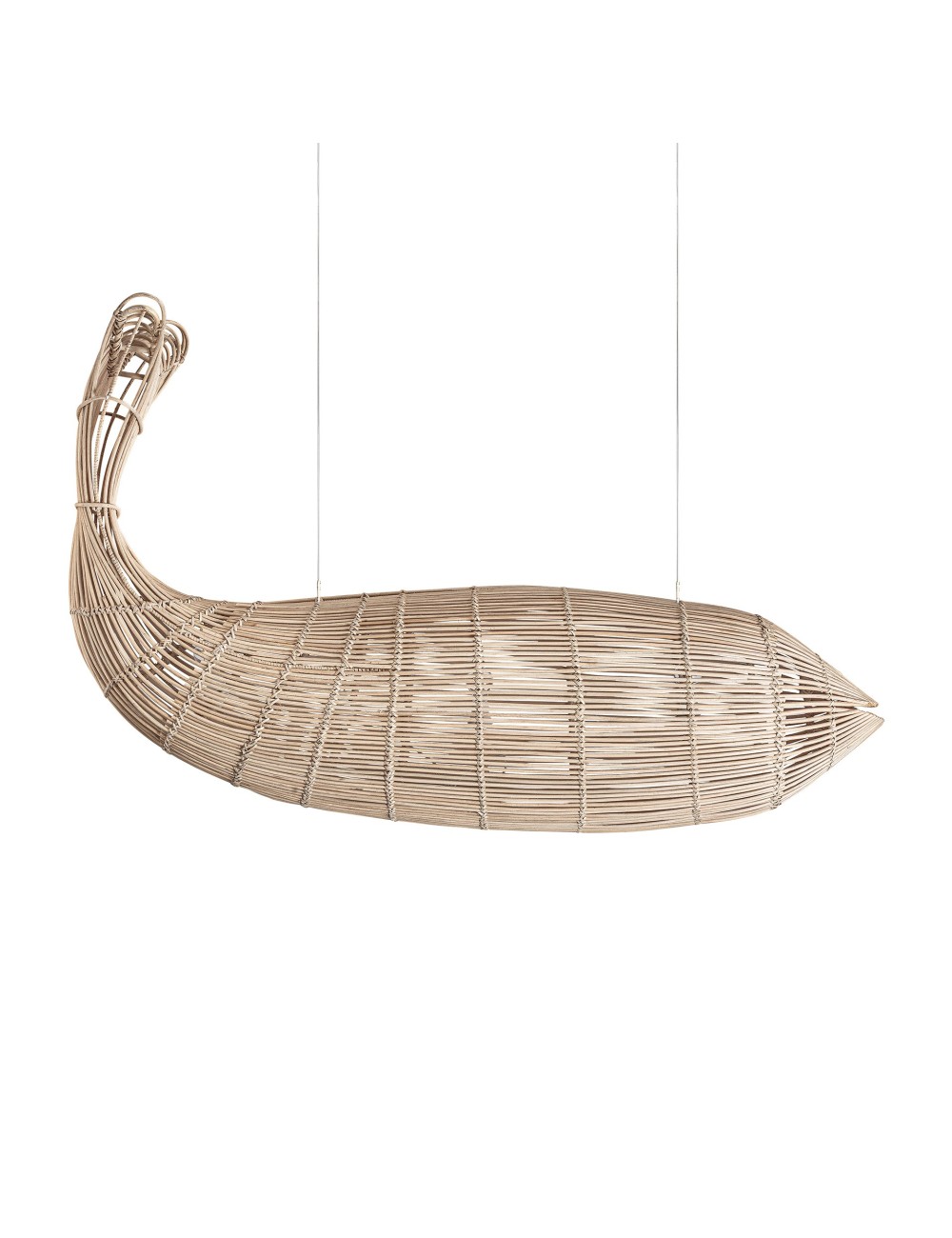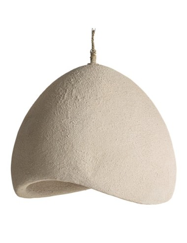 Lámpara de colgar Fish de estilo boho fabricado en ratán en color marrón. | Lámpara de colgar Sibille de estilo contemporáneo fabricado en resina en color blanco roto con acabado rugoso. |