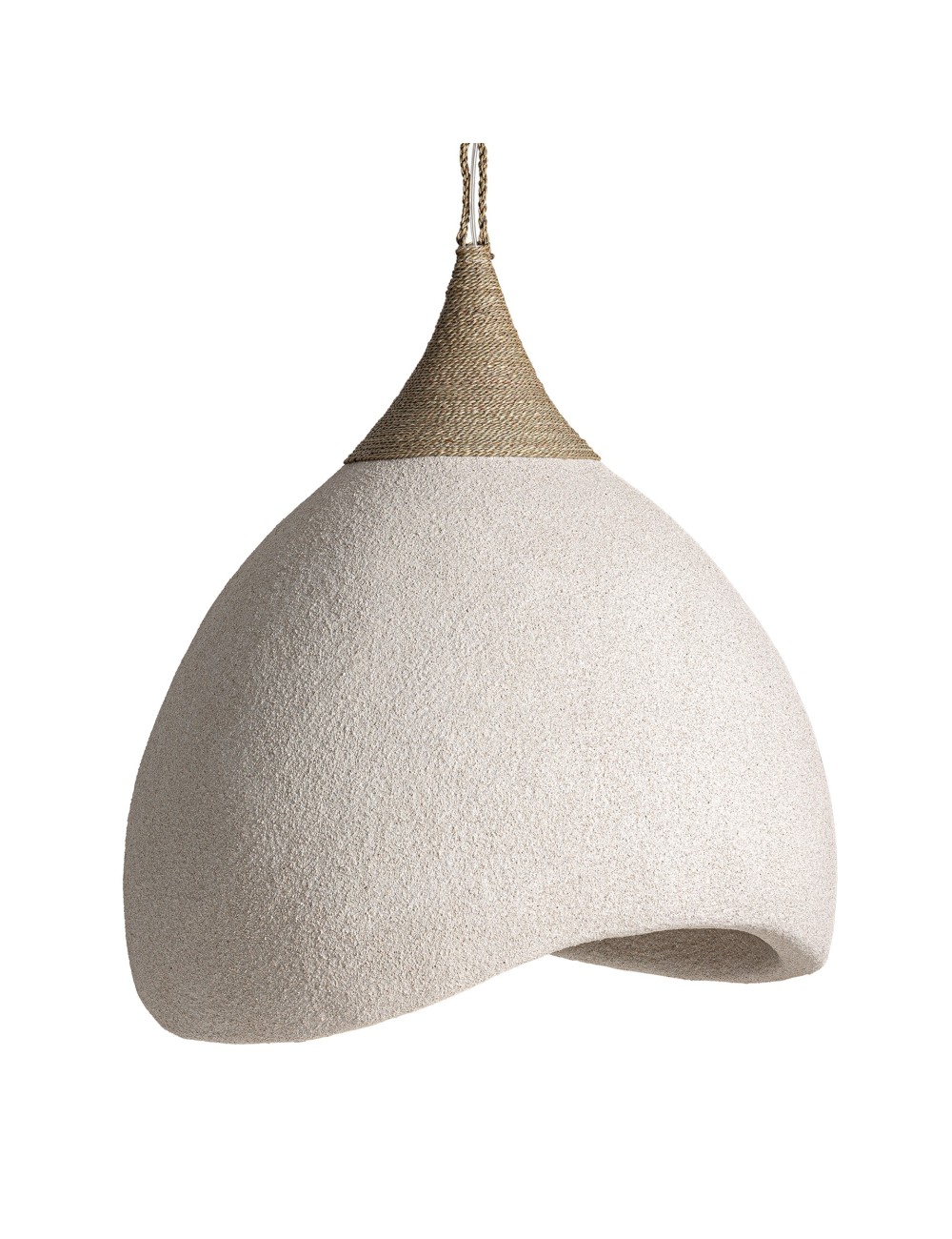 Lámpara de colgar nyland de estilo rústico fabricado en resina en color crema con acabado rugoso combinado con yute en color arena.