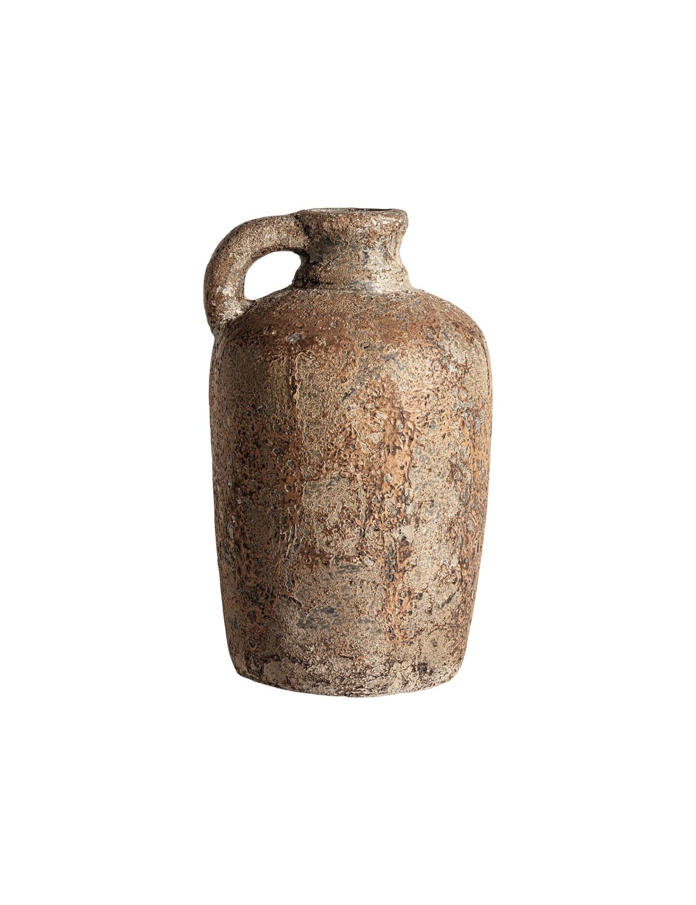 Jarrón helen de estilo vintage fabricado en cerámica en color tonos en marrón con acabado envejecido. | Botella decorativa caballo de estilo étnico fabricado en vidrio en color burdeos combinado con madera de teka reciclada. | Botellón orgánico Rif de estilo provenzal fabricado en cerámica en color tonos de azul. | Jarrón Plissé stone de estilo art deco fabricado en cerámica en color blanco. |