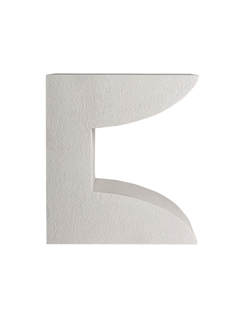 Mesa auxiliar trim de estilo art deco fabricado en cemento en color blanco roto combinado con madera dm.