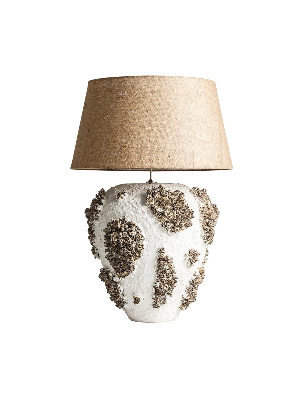 Lámpara de sobremesa thora de estilo nórdico fabricado en terracota en color blanco combinado con yute en color beige. Compatible con: 25567 34935.