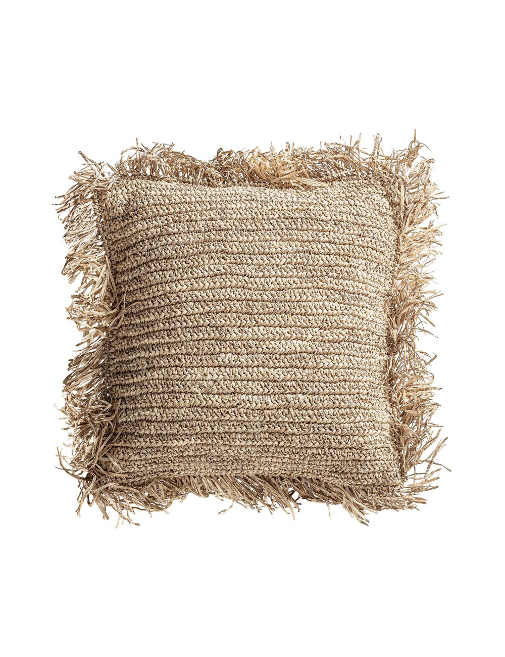 Cojín igotz de estilo boho fabricado en fibra natural en color beige combinado con poliéster.
