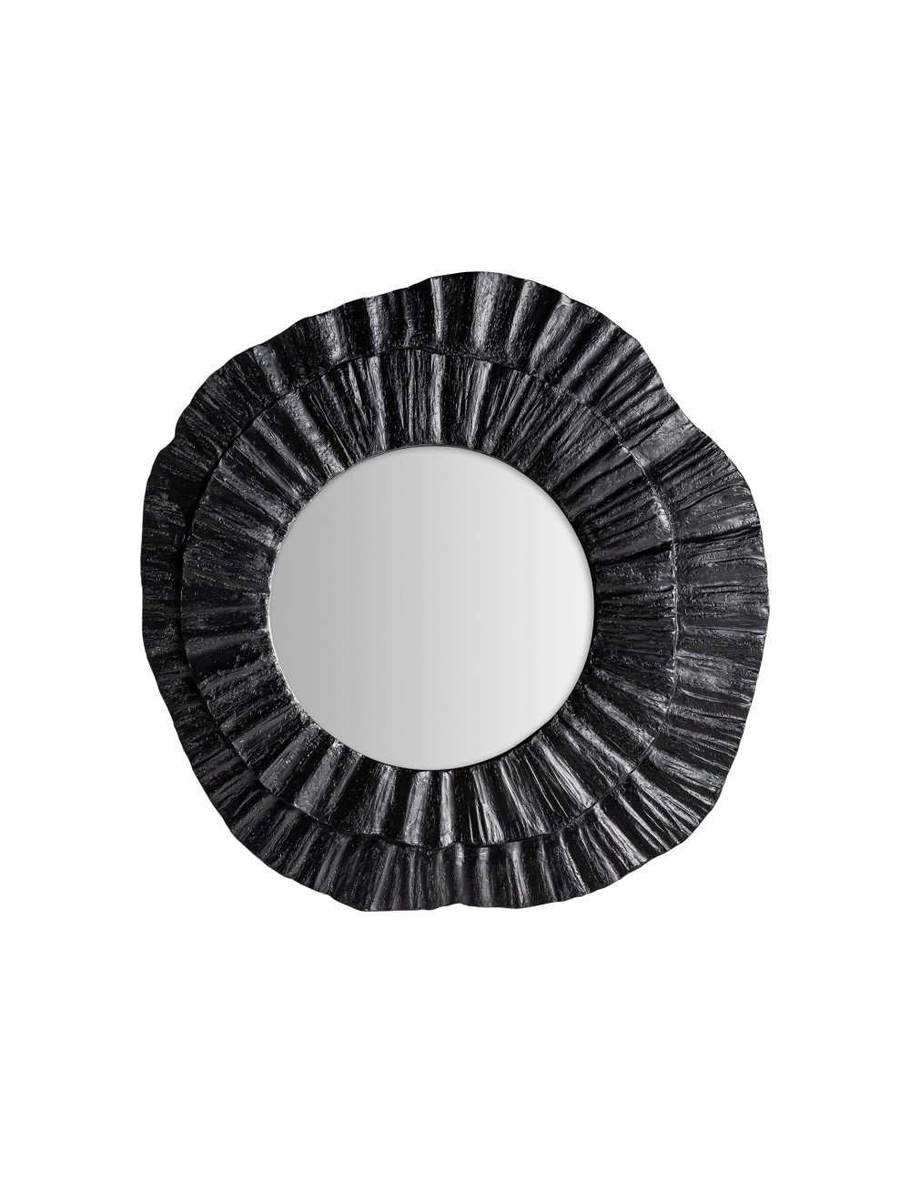 Espejo Falhe de estilo contemporáneo fabricado en resina en color negro combinado con espejo y hierro.