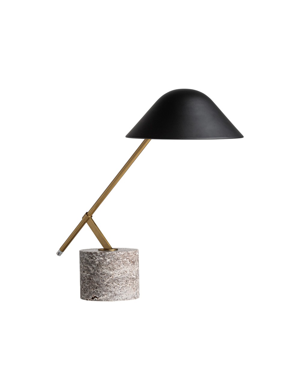 Lámpara de sobremesa Eos de estilo art deco fabricado en mármol en color gris combinado con hierro en color oro. Producto desmontable.