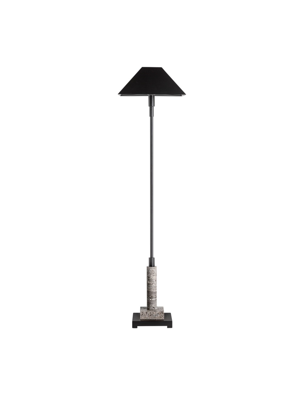Lámpara de pie Atlas de estilo art deco fabricado en mármol en color gris combinado con hierro en color negro. Producto desmontable.