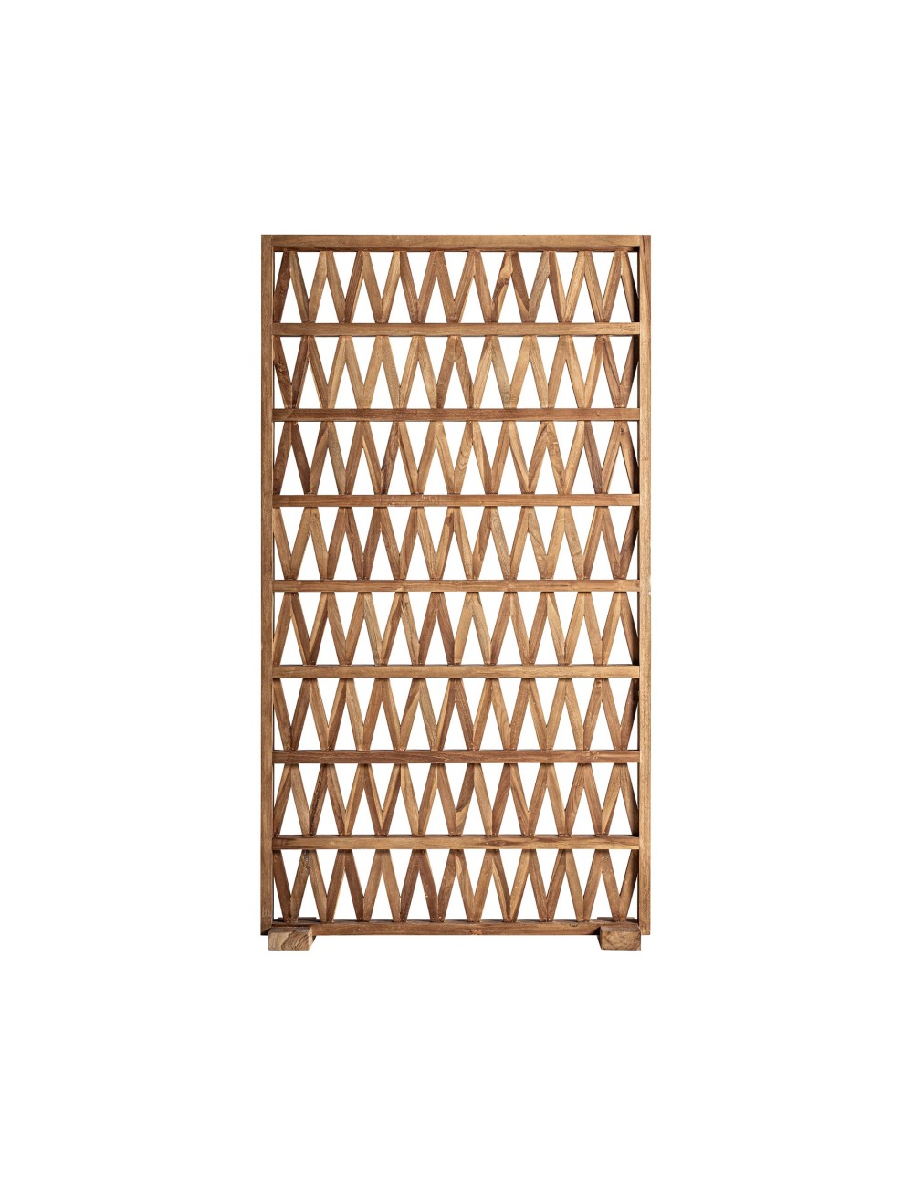Parabán viriat de estilo boho fabricado en madera de teka en color marrón.