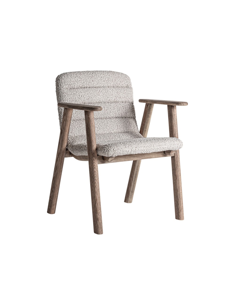 Silla Jacquard de estilo contemporáneo fabricado en madera de olmo en color marrón claro combinado con poliéster en color beige.