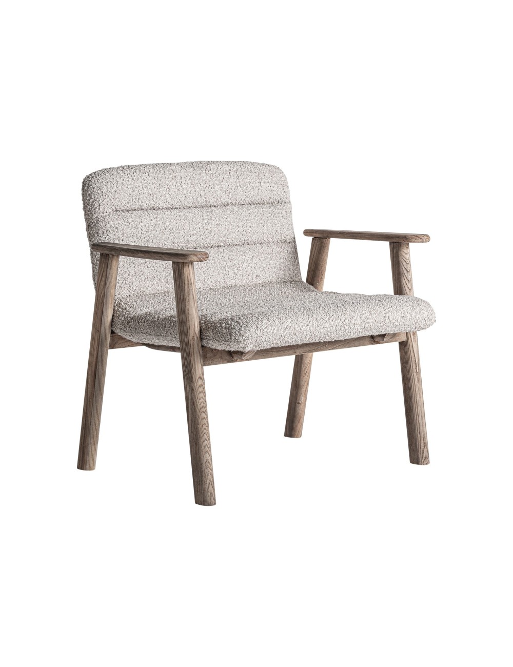 Silla Jacquard de estilo contemporáneo fabricado en madera de olmo en color marrón claro combinado con poliéster en color beige.