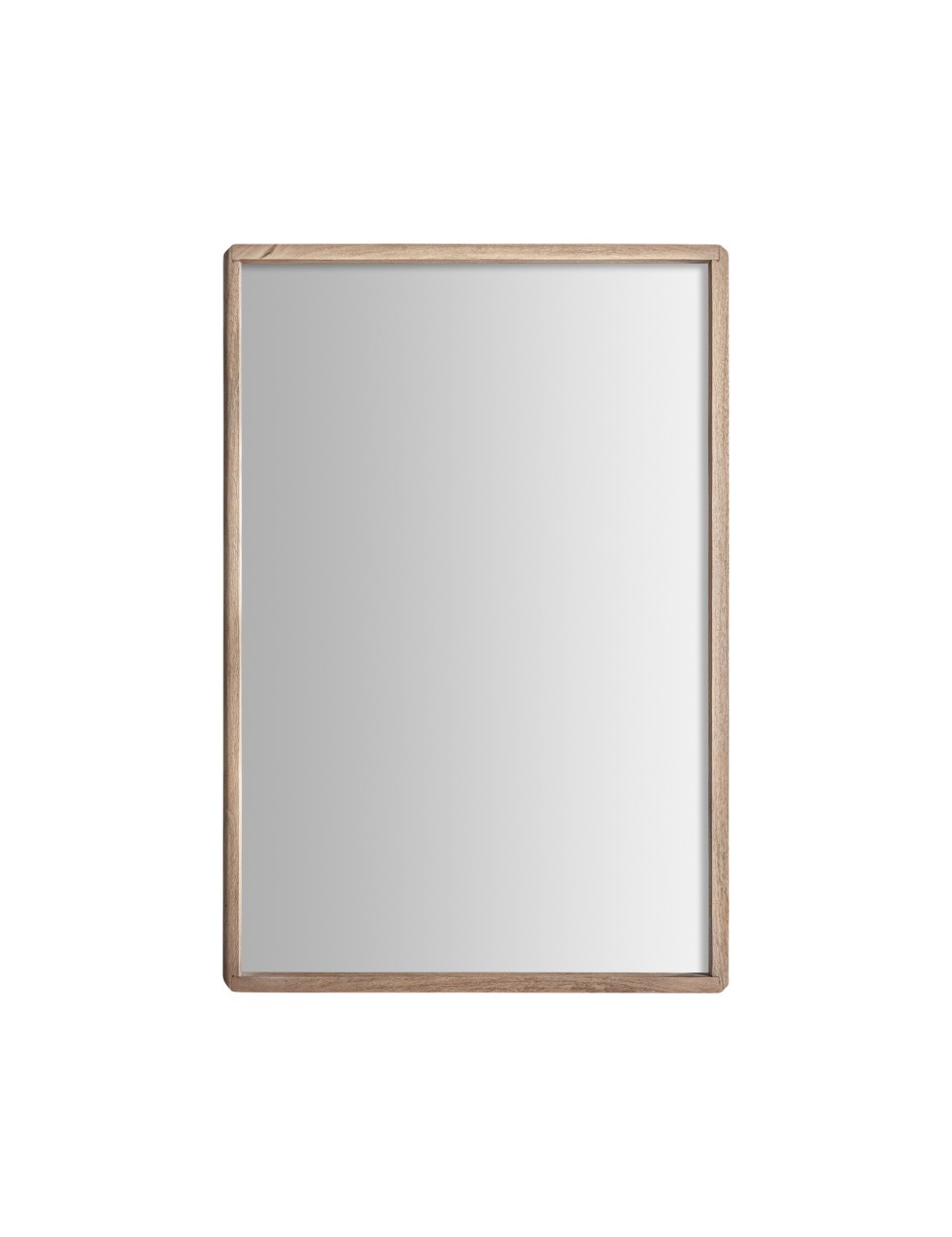 Espejo jacquard de estilo contemporáneo. Fabricado en madera de mango en color marrón claro combinado con espejo.