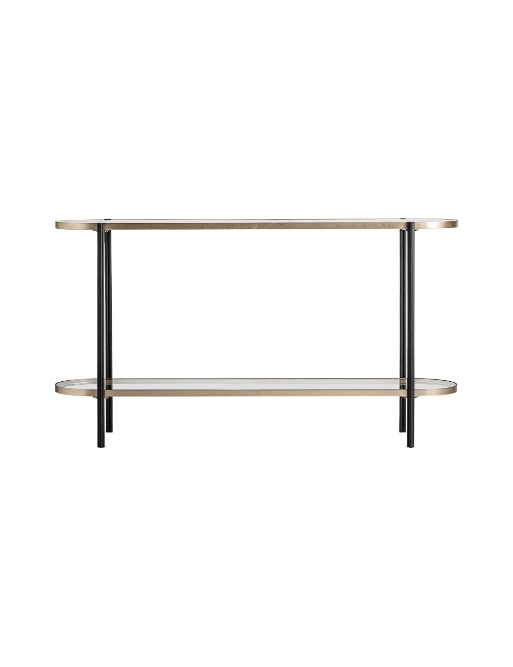 Consola lans de estilo art deco fabricado en hierro en color negro oro combinado con cristal. Producto desmontable.
