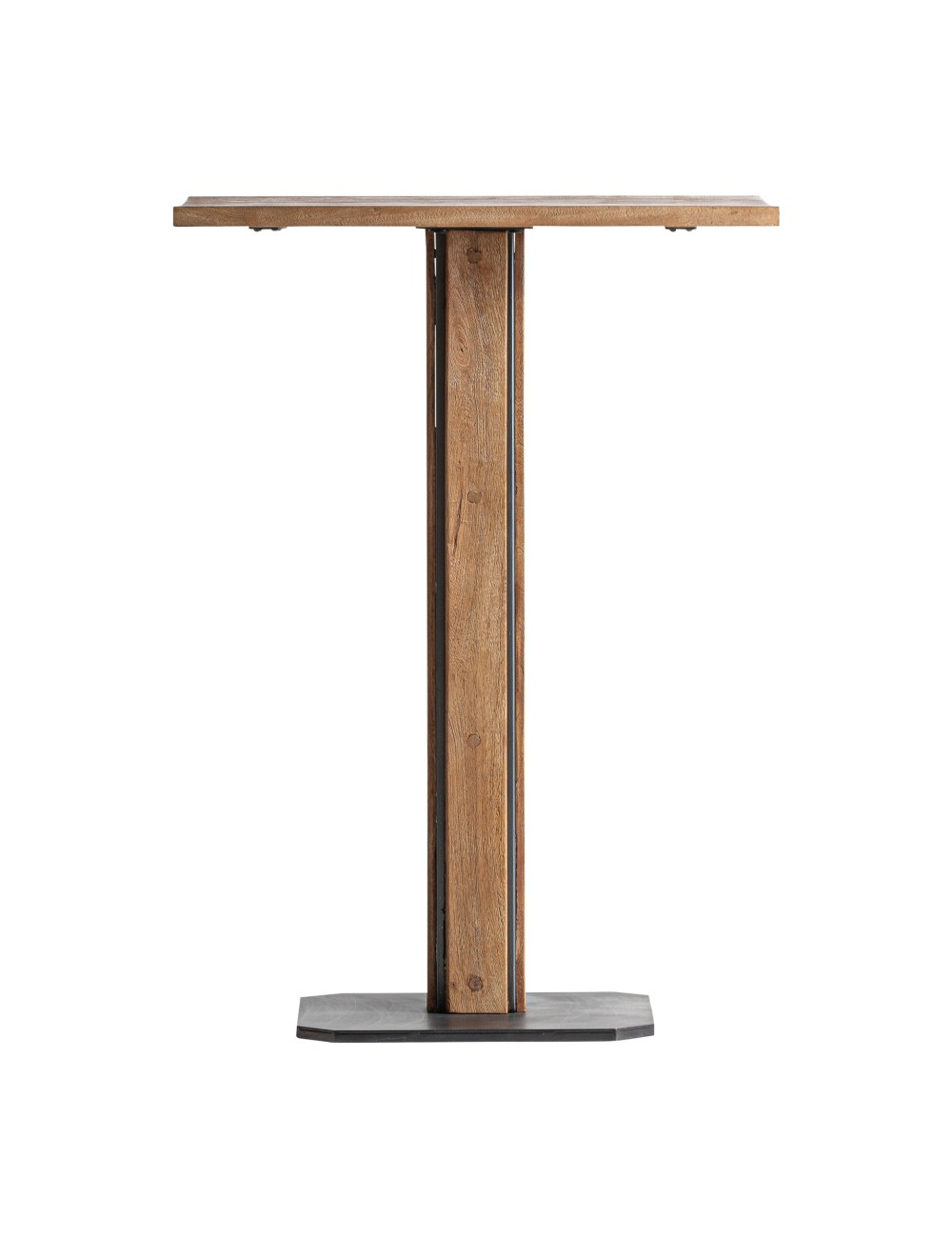 Mesa bar Rho de estilo contemporáneo fabricado en madera de mango en color marrón claro combinado con hierro en color negro. Producto desmontable.