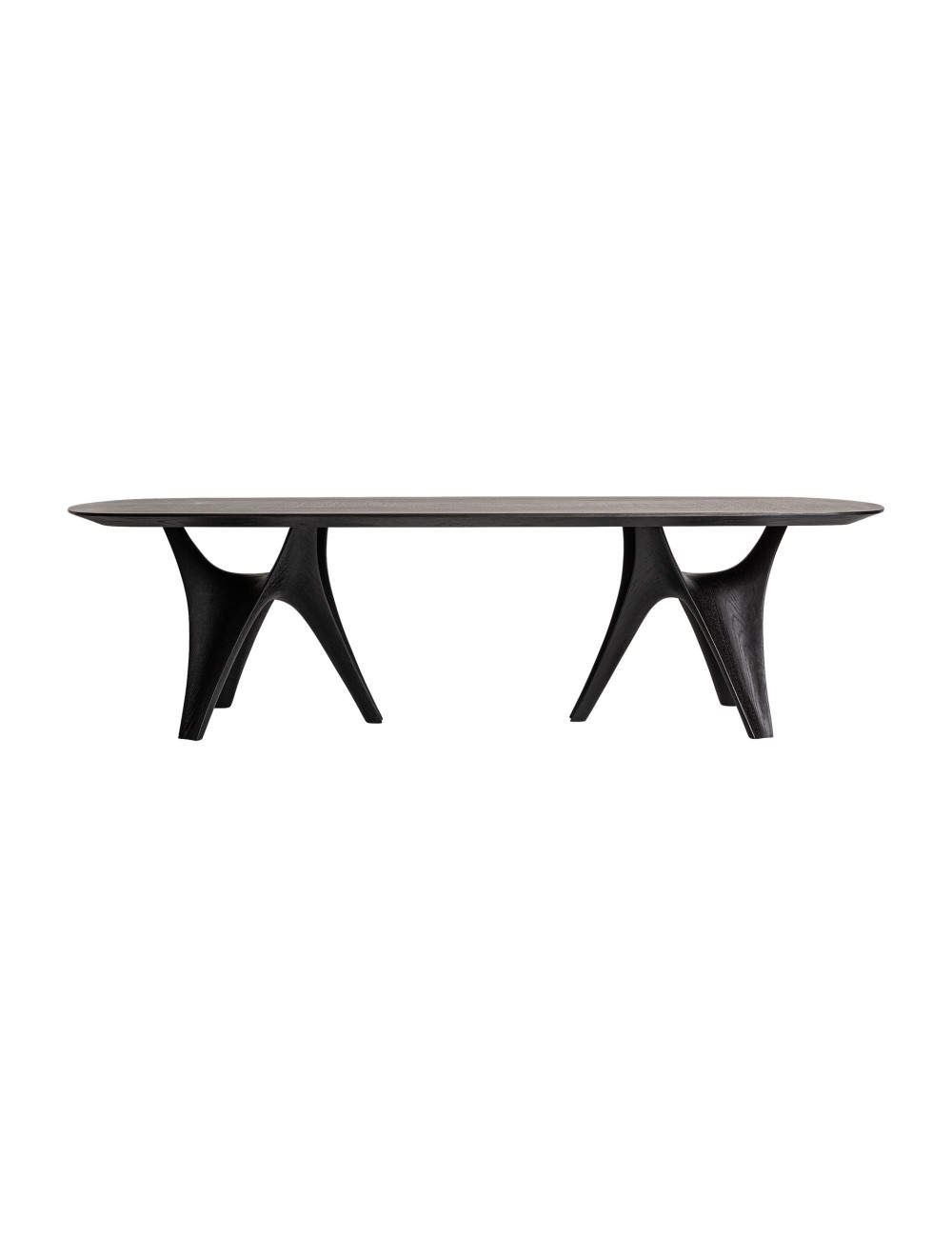 Mesa comedor bilzen de estilo contemporáneo fabricado en chapa de roble en color negro combinado con madera dm y fibra de vidrio.