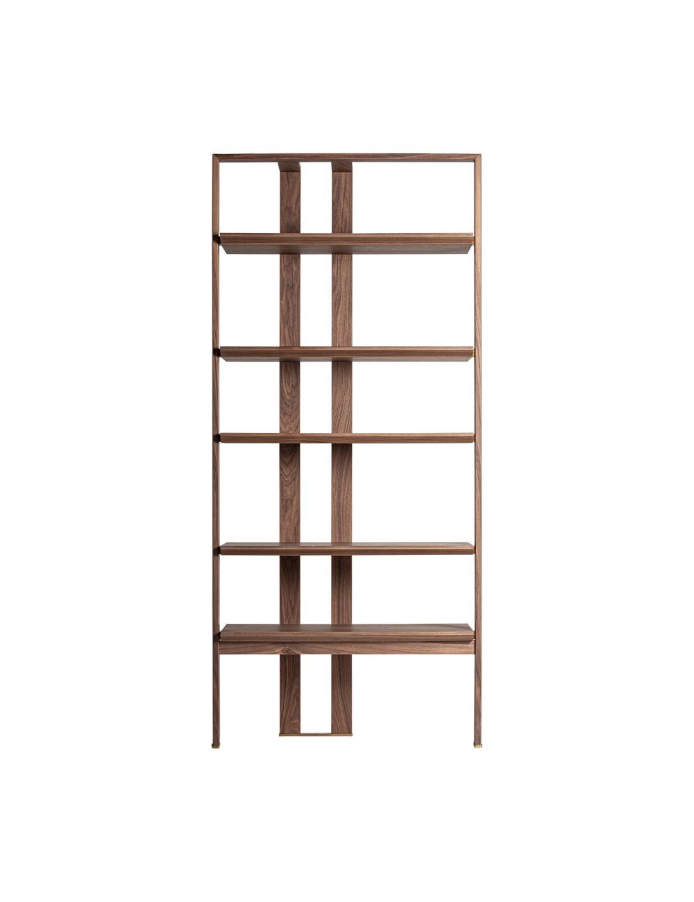 Librería gifhorn de estilo contemporáneo fabricado en madera de olmo en color marrón combinado con chapa de nogal en color marrón y madera dm. | Librería hambye de estilo contemporáneo fabricado en madera de acacia en color marrón. |