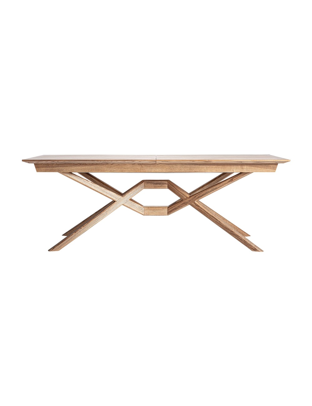 Mesa extensible vrebos de estilo contemporáneo fabricado en madera de fresno en color marrón claro combinado con chapa de madera. Producto extensible.