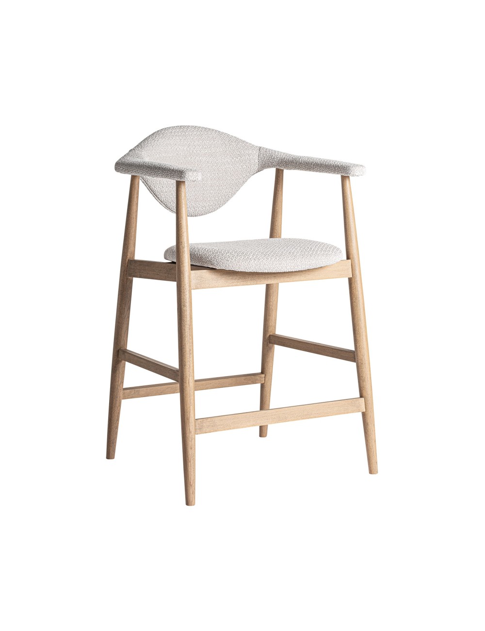 Taburete dilbeek de estilo contemporáneo fabricado en madera de haya en color marrón claro con acabado mate combinado con espuma y poliéster en color gris con acabado jaspeado. | Taburete caen de estilo colonial fabricado en madera de teka en color marrón combinado con fibra natural en color marrón claro. |