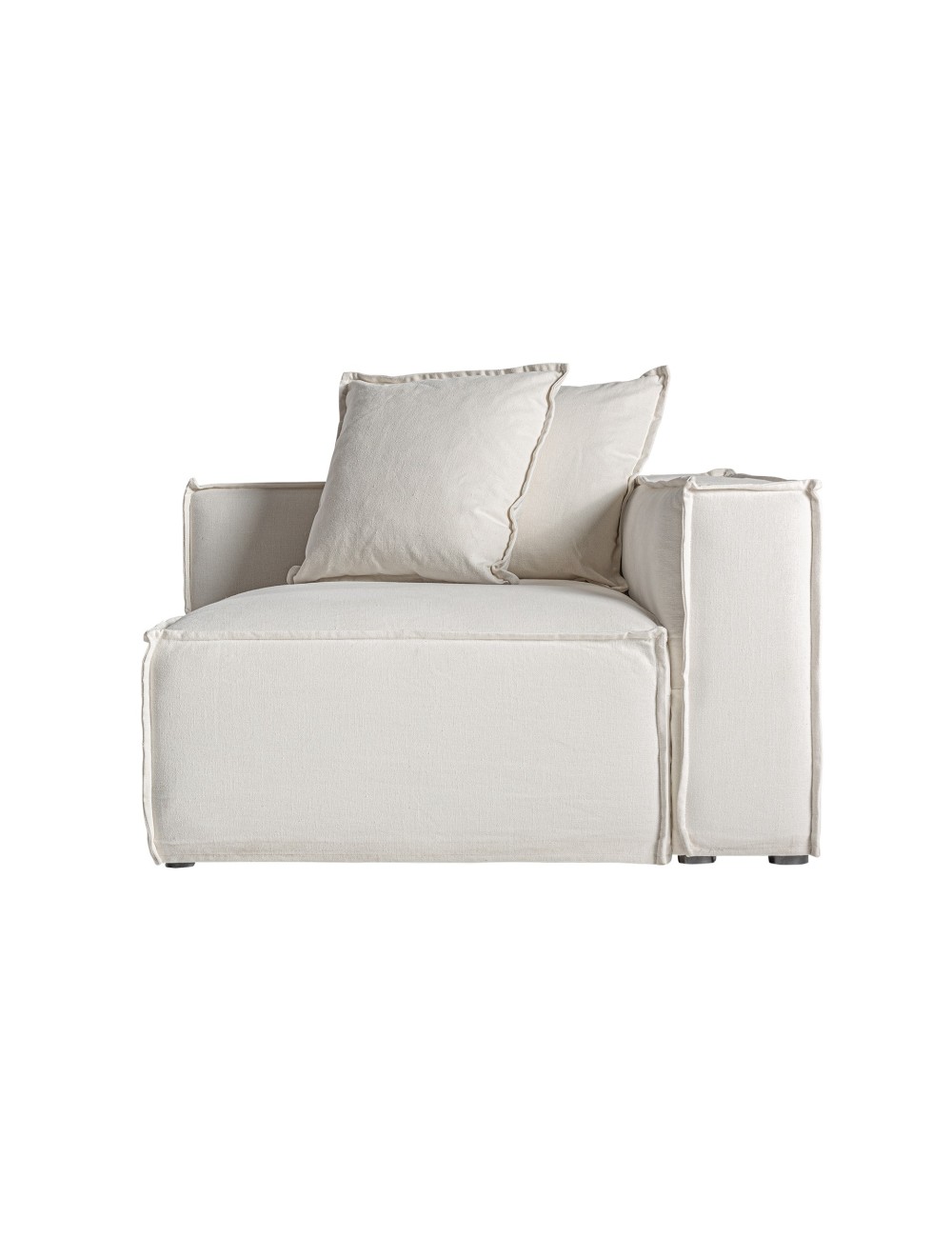 Módulo sofá esquinero derecha virolle de estilo colonial fabricado en lino en color blanco con acabado liso combinado con algodón y espuma. Producto desenfundable. Compatible con: 36089. | Módulo sofá esquinero izquierda virolle de estilo colonial fabricado en lino en color blanco con acabado liso combinado con algodón y espuma. Producto desenfundable. Compatible con: 36088. | Módulo sofá central Wingles de estilo contemporáneo fabricado en madera de alerce en color beige con acabado jaspeado combinado con poliéster en color blanco roto y hierro en color negro. Cojines rellenos de pluma de oca mixta. . Compatible con: 36090 36092. |