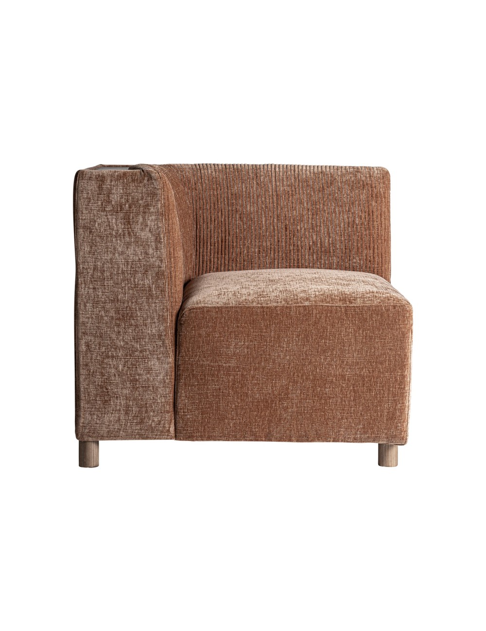 Módulo sofá esquinero Trevic de estilo contemporáneo fabricado en poliéster en color marrón combinado con madera de pino en color marrón y madera contrachapada.