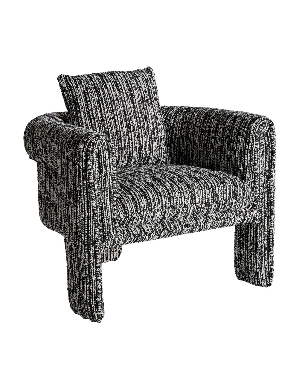 Sillón kostov de estilo contemporáneo fabricado en poliéster en color negro con acabado jaspeado combinado con madera de pino y madera contrachapada.