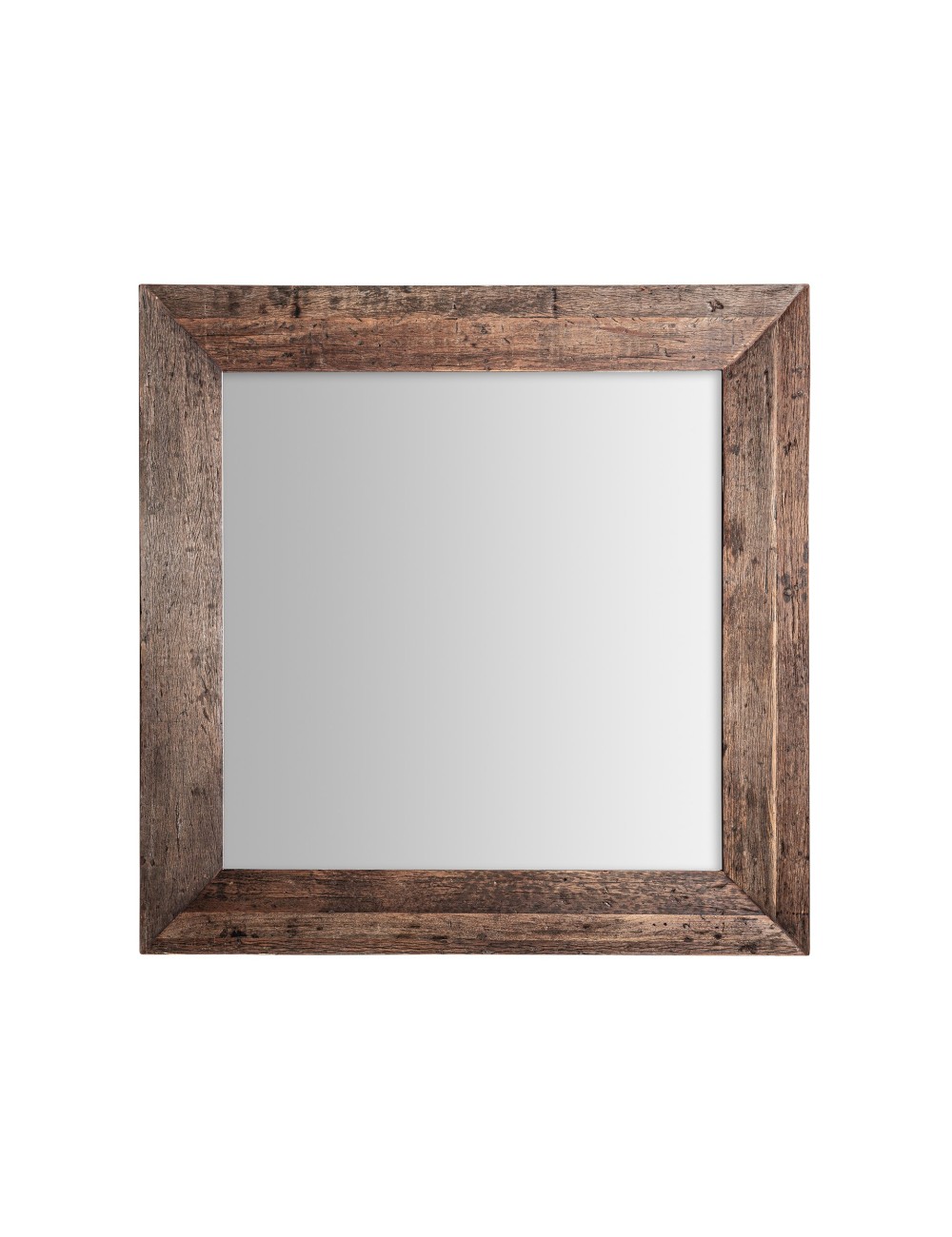 Espejo skorup de estilo colonial fabricado en madera recuperada en color marrón con acabado envejecido combinado con espejo.