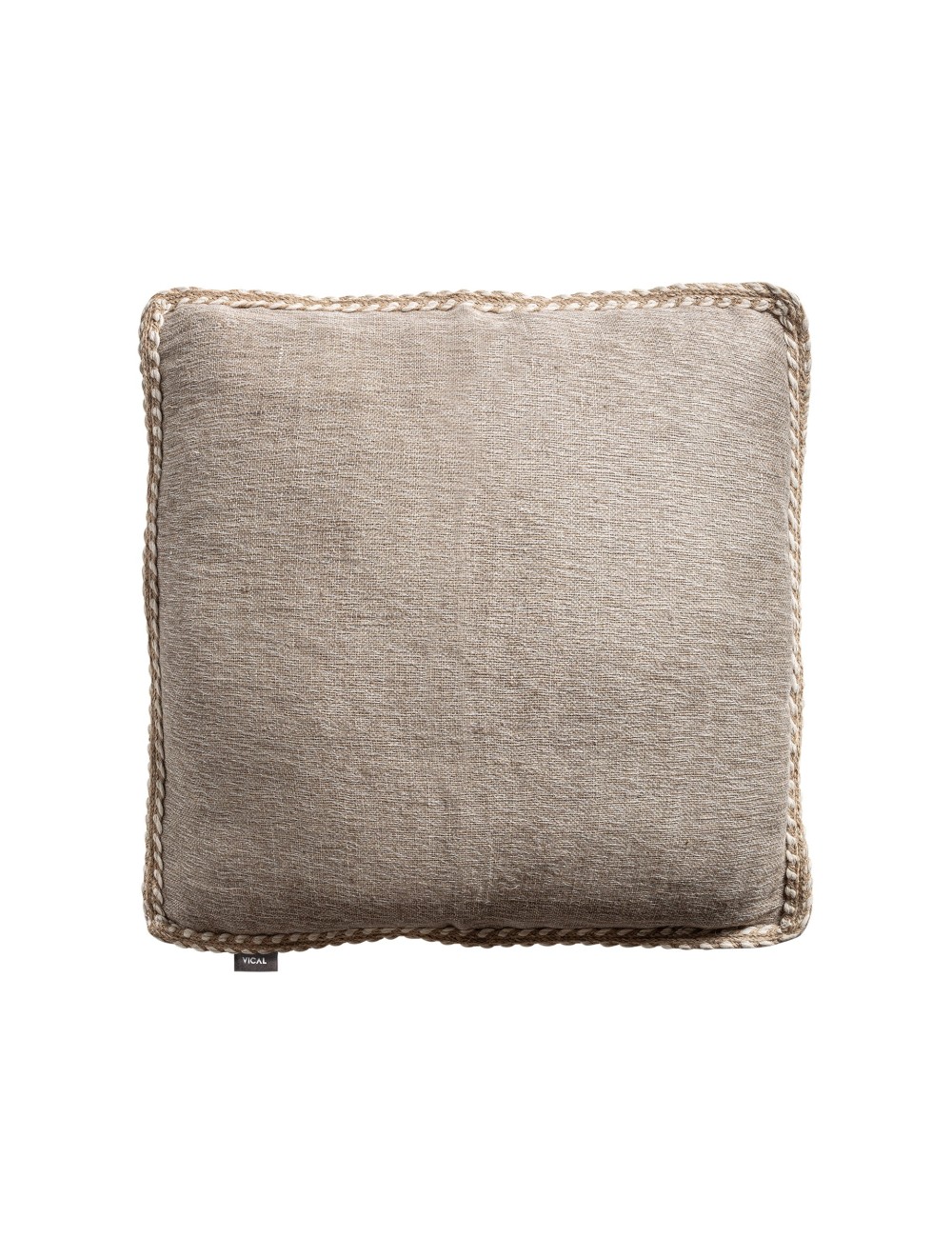 Cojín nehan de estilo clásico fabricado en lino en color arena combinado con guata sintética. Producto desenfundable.