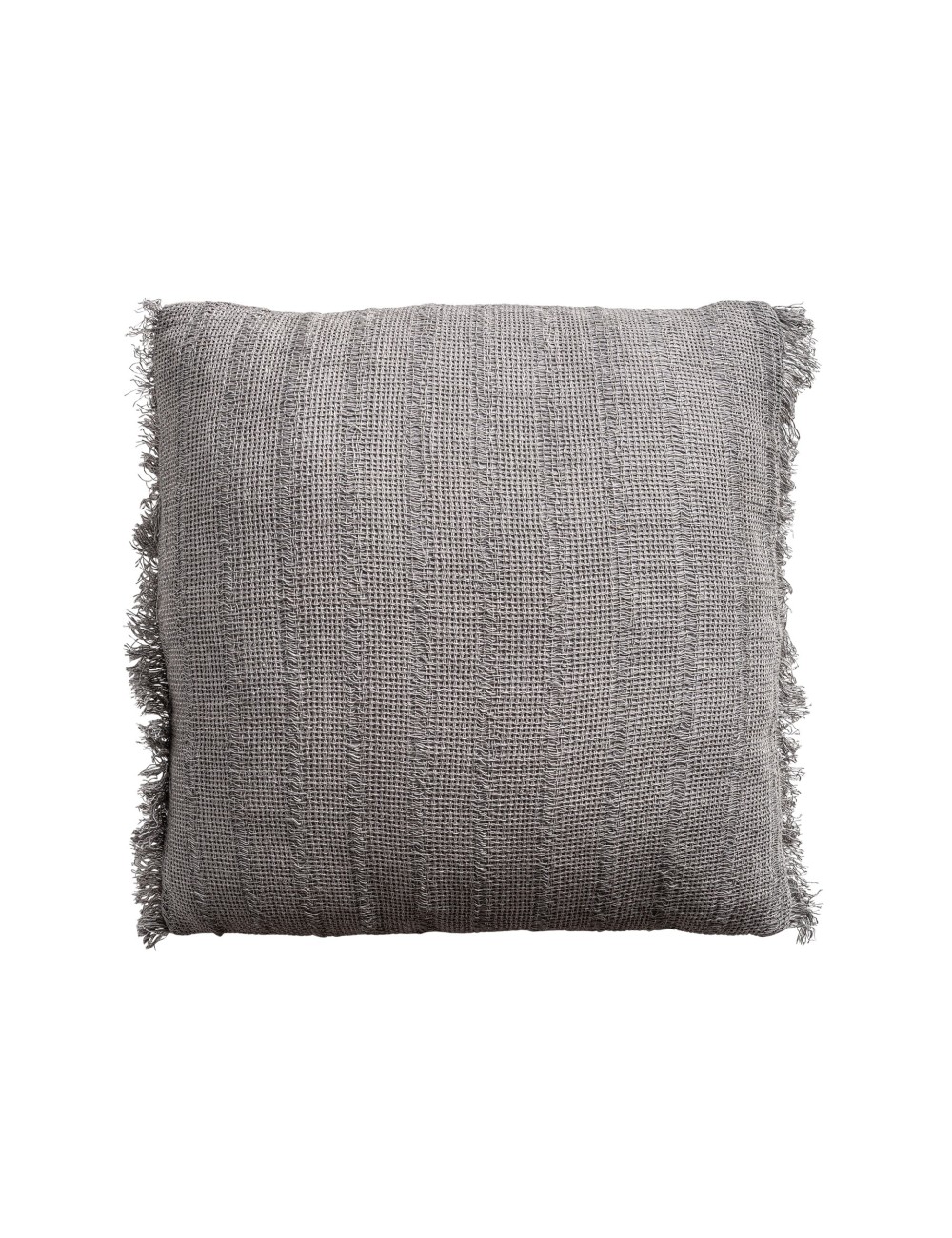 Cojín brais de estilo clásico fabricado en lino en color gris combinado con guata sintética. Producto desenfundable.