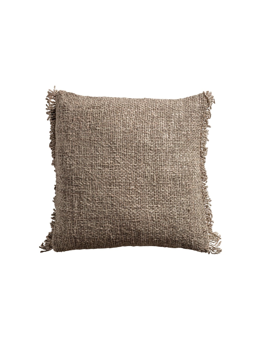 Cojín edgar de estilo clásico fabricado en algodón en color beige combinado con lino en color marrón y guata sintética. Producto desenfundable.