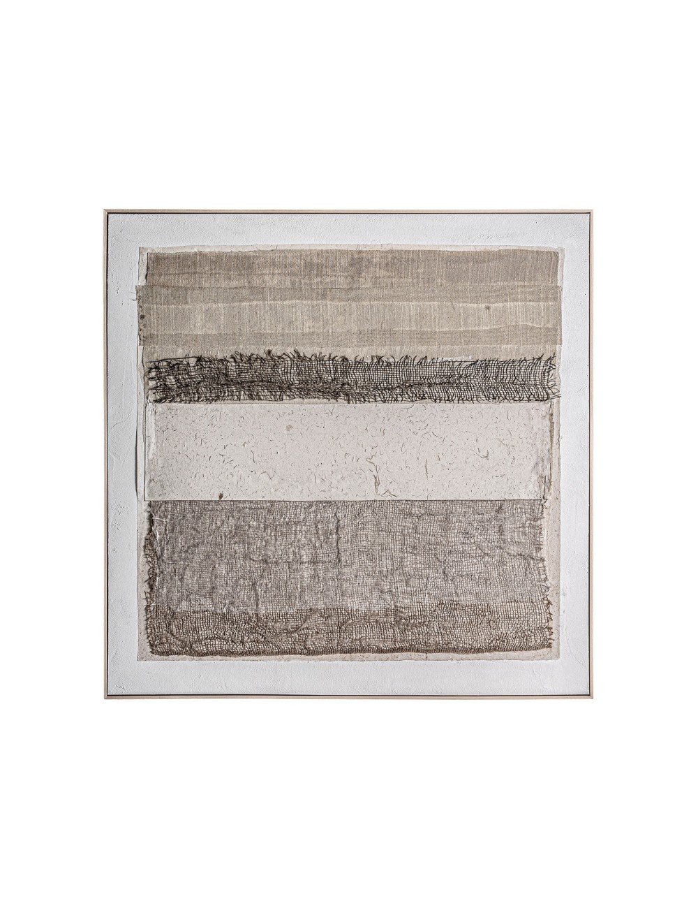 Cuadro Bavois de estilo contemporáneo fabricado en lienzo en color blanco roto combinado con madera de pino en color marrón claro en color tonos en marrón. | Lienzo Baran de estilo contemporáneo fabricado en lienzo en color tonos de azul con acabado artesanal. | Cuadro Zeus de estilo boho fabricado en madera de mango en color marrón claro combinado con cáñamo en color beige y yute en color tonos neutros. | Cuadro Urzuri de estilo contemporáneo fabricado en yute en color tonos neutros combinado con algodón y madera de mango en color negro. |