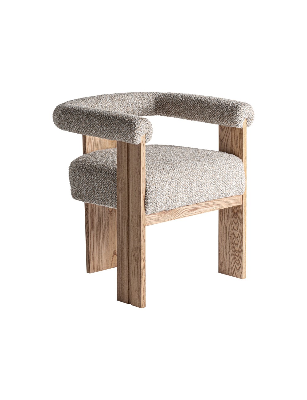 Silla Ustka de estilo contemporáneo fabricado en poliéster en color gris con acabado jaspeado combinado con madera roble en color marrón claro.