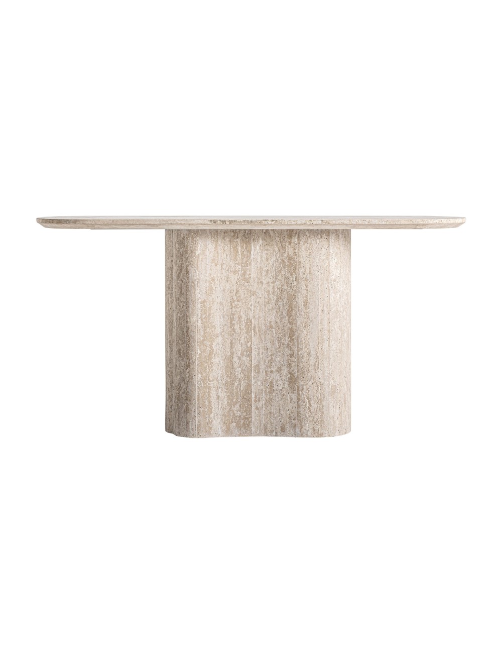 Consola Thiennes de estilo art deco fabricado en travertino en color beige. Producto desmontable.