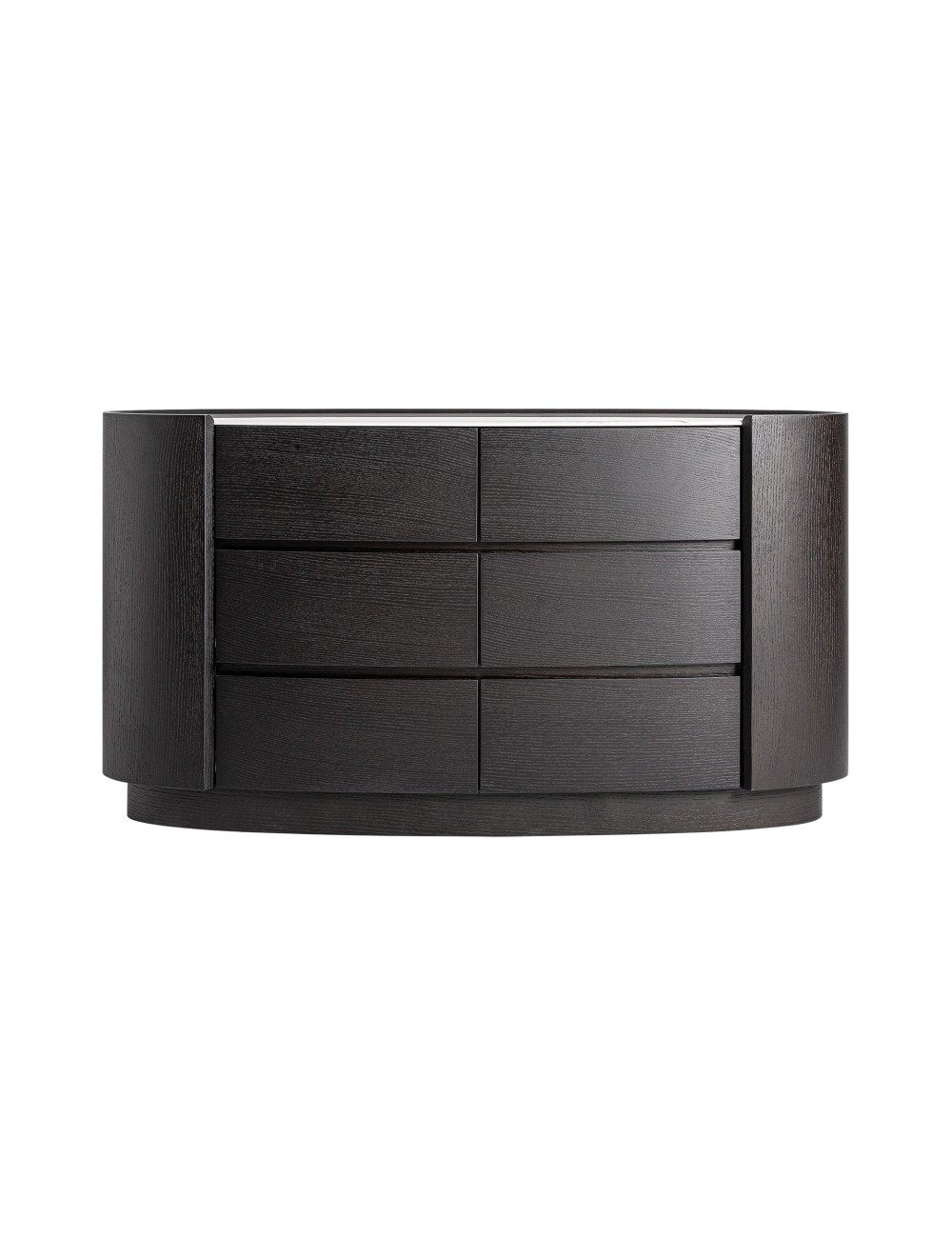 Cómoda Isola de estilo contemporáneo fabricado en madera contrachapada en color negro combinado con chapa de roble en color negra y piedra sinterizada en color blanco. | Cómoda Stuetta de estilo contemporáneo fabricado en madera contrachapada en color marrón combinado con chapa de roble en color marrón y piedra sinterizada en color blanco. | Cómoda Soaza de estilo contemporáneo fabricado en madera contrachapada en color marrón combinado con chapa de eucalipto en color marrón claro y piedra sinterizada en color blanco. |